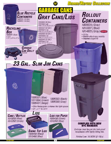 • 14 Gal. • Size: 24” D x 31-1/2“H • Wheels afford easy mobility