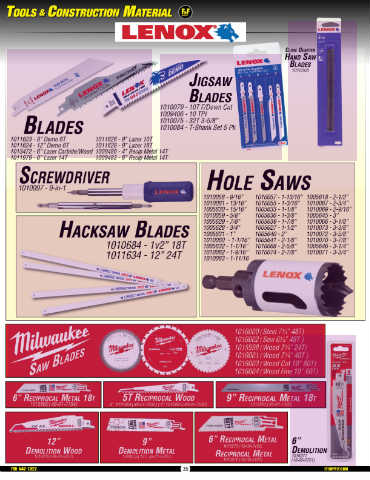 1013472 - 6” Lazer Carbide/Wood 1009486 - 4” Recip Metal 14T